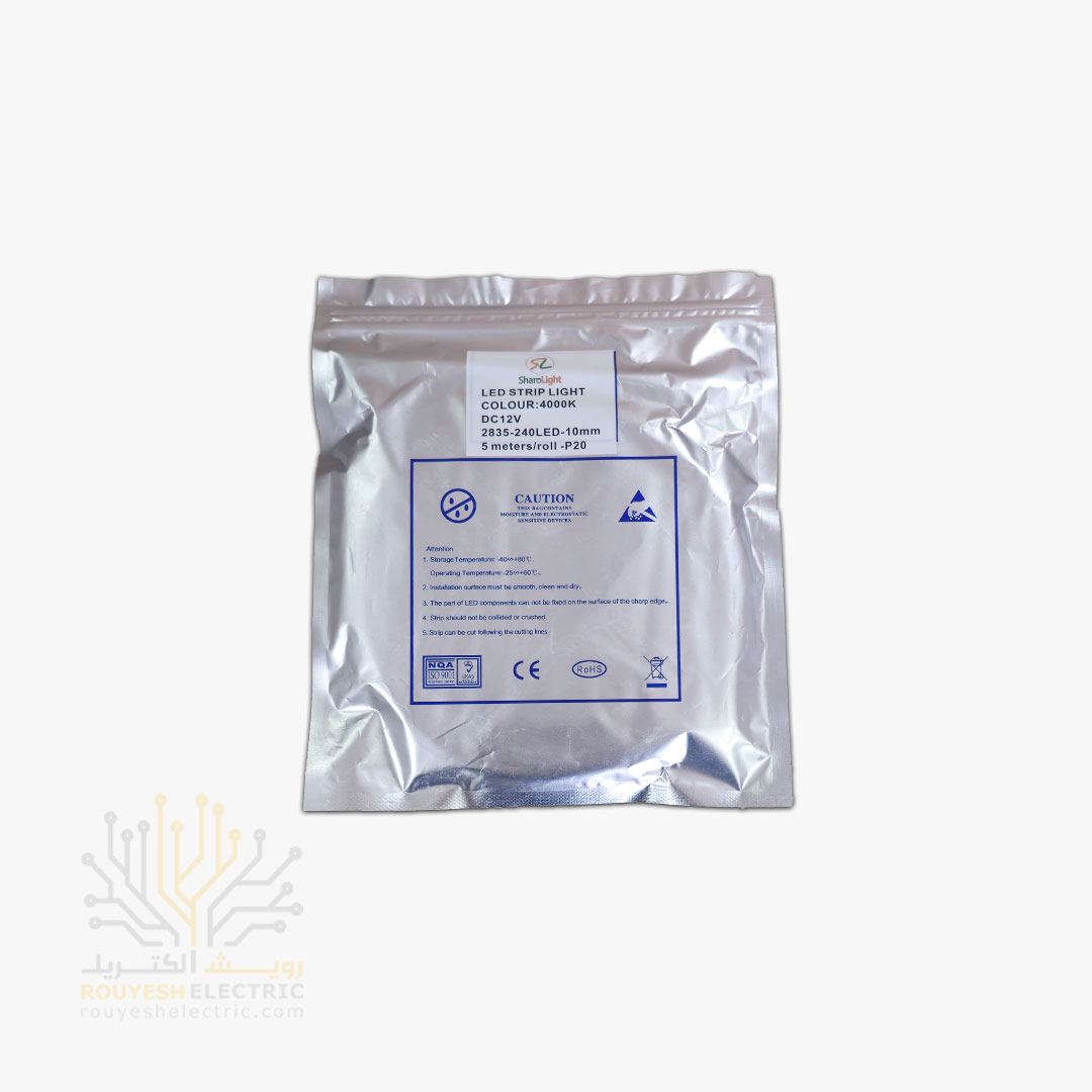 ریسه نواری لاینر 24 ولت برند شارو لایت تراکم 240 برش 2.5 سانت عرض 8 میل پشت چسب دار آفتابی حلقه 5 متری