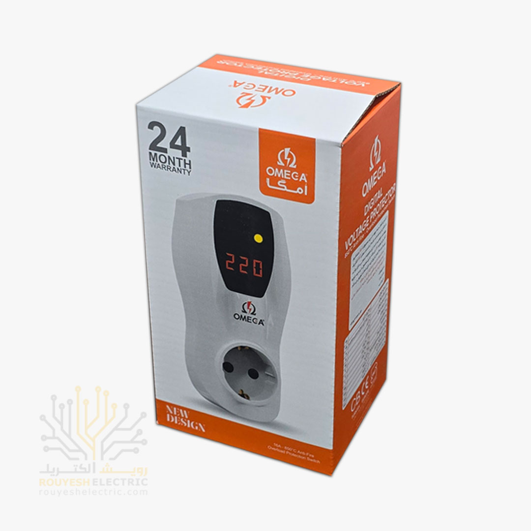 محافظ برق کولری دیواری سه شاخه برند امگا مدل S55000 MK استاندارد بدون ارت بدون کلید 40 آمپر دیجیتال