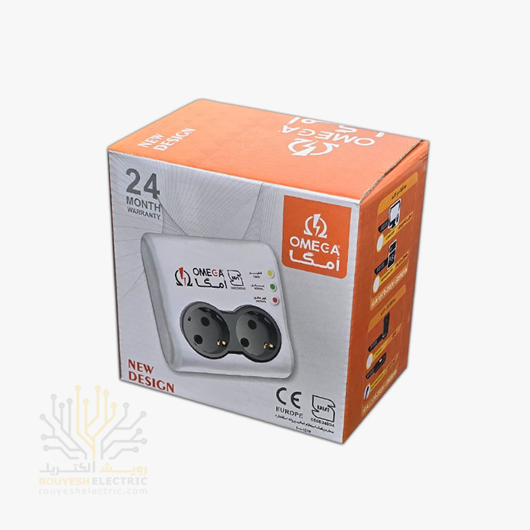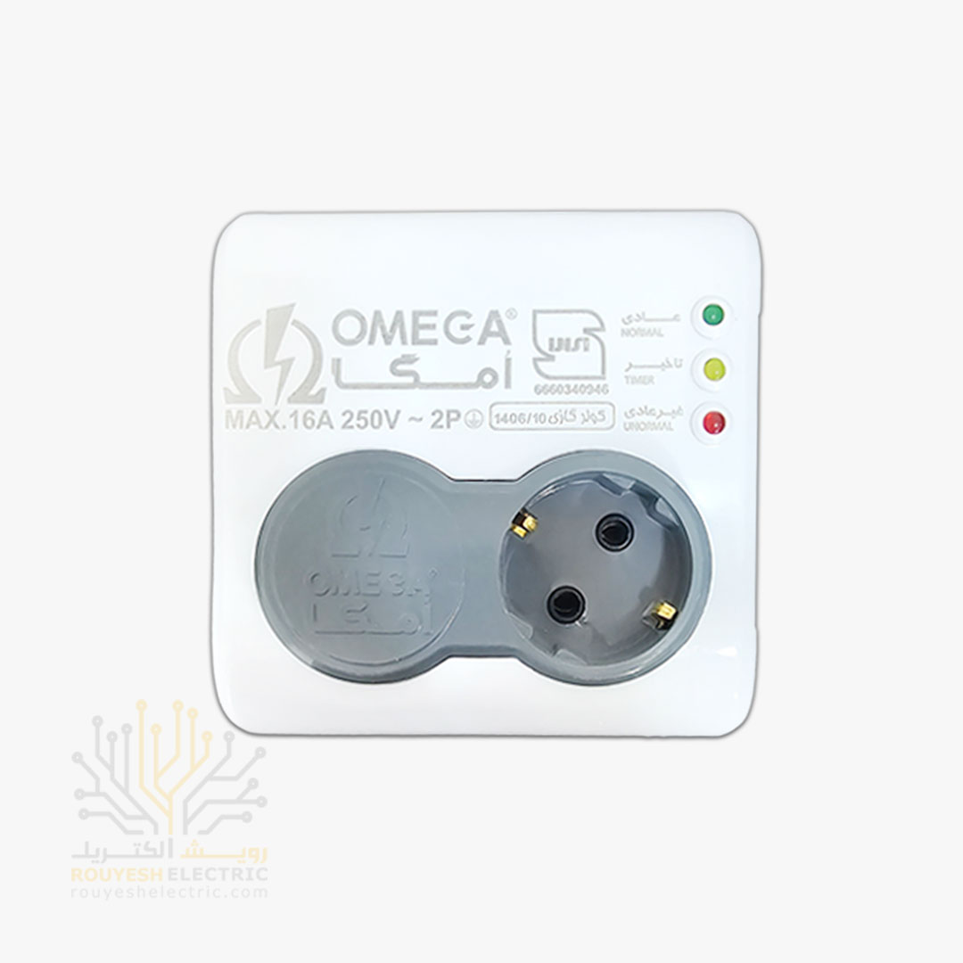 محافظ برق کولری دیواری تک خانه برند امگا مدل p1000 استاندارد ارتدار بدون کلید آنالوگ