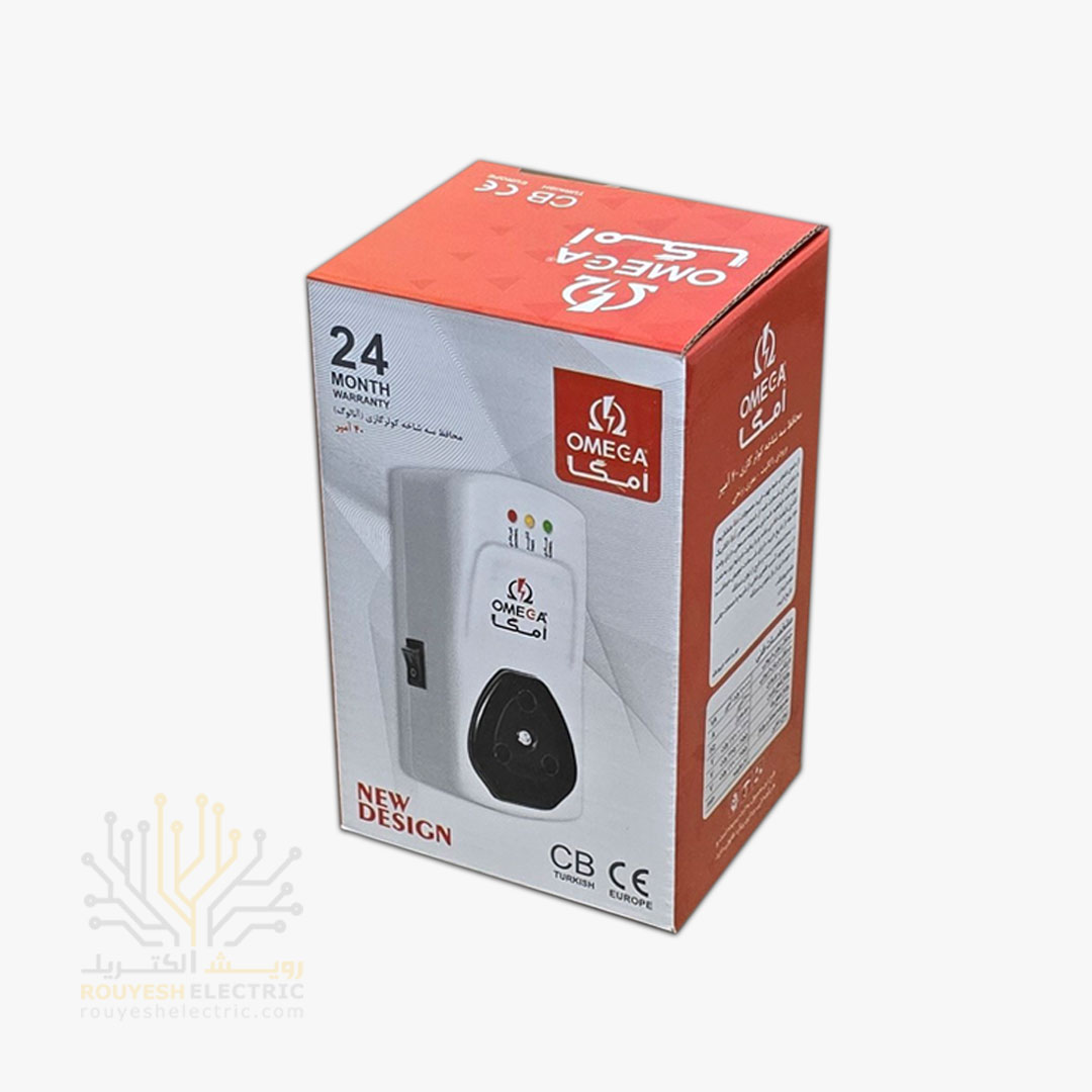 محافظ برق کولری دیواری تک خانه برند امگا مدل p1000 استاندارد ارتدار بدون کلید آنالوگ