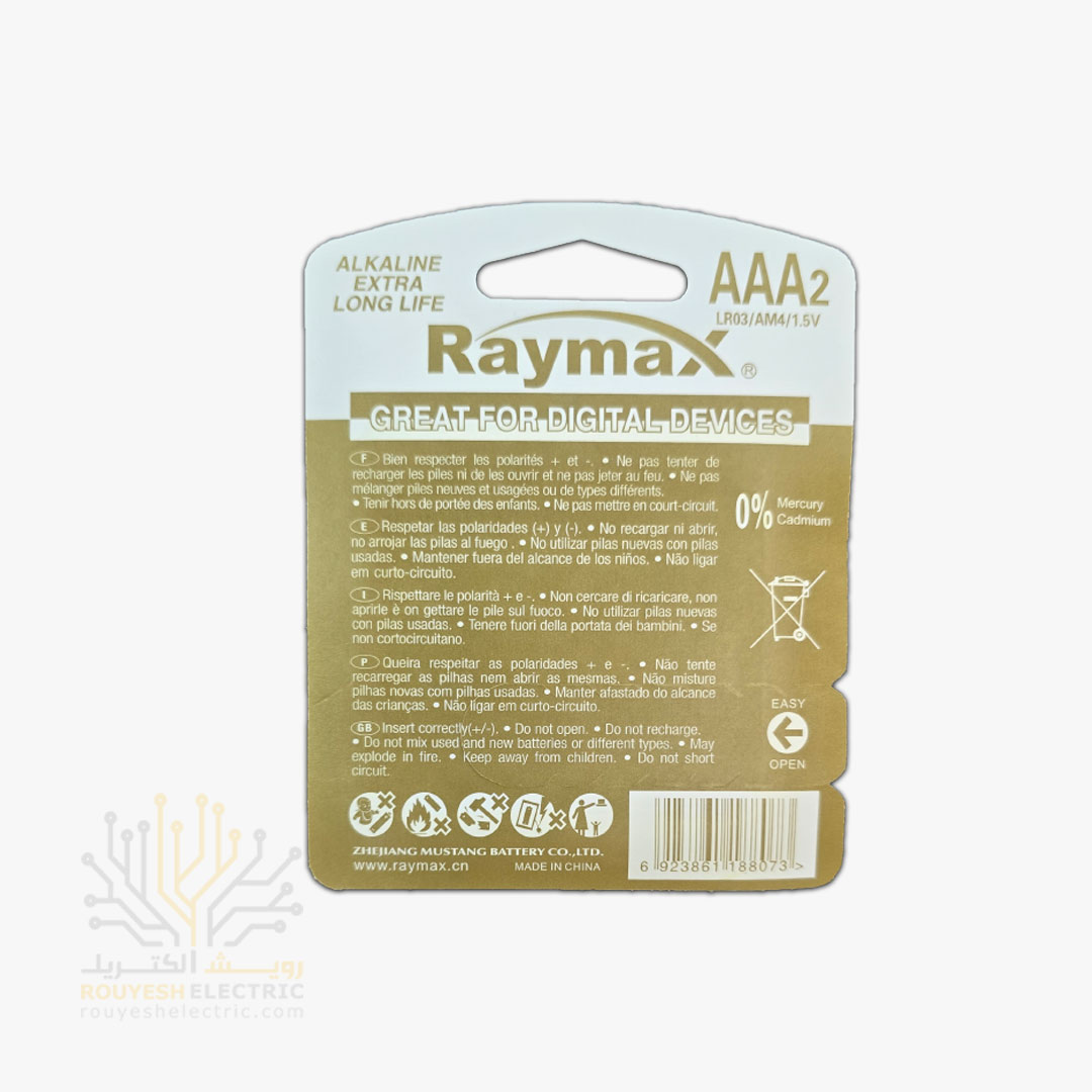 باطری نیم قلمی آلکالاین برند رایمکس کارت 2 تایی