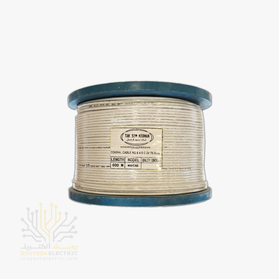 کابل آنتن برند تک سیم کرمان مدل مهتاب مغز مس 0/70 شیلد رنگ مس 80 رشته قرقره 600 متری
