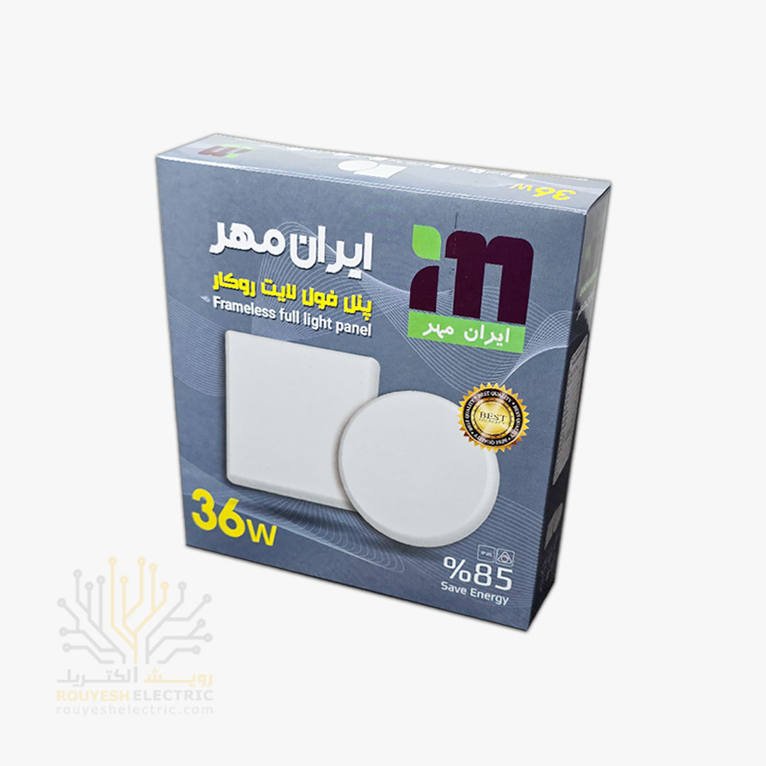 پنل سقفی روکار 36 وات برند ایران مهر مدل فول لایت مربع مهتابی