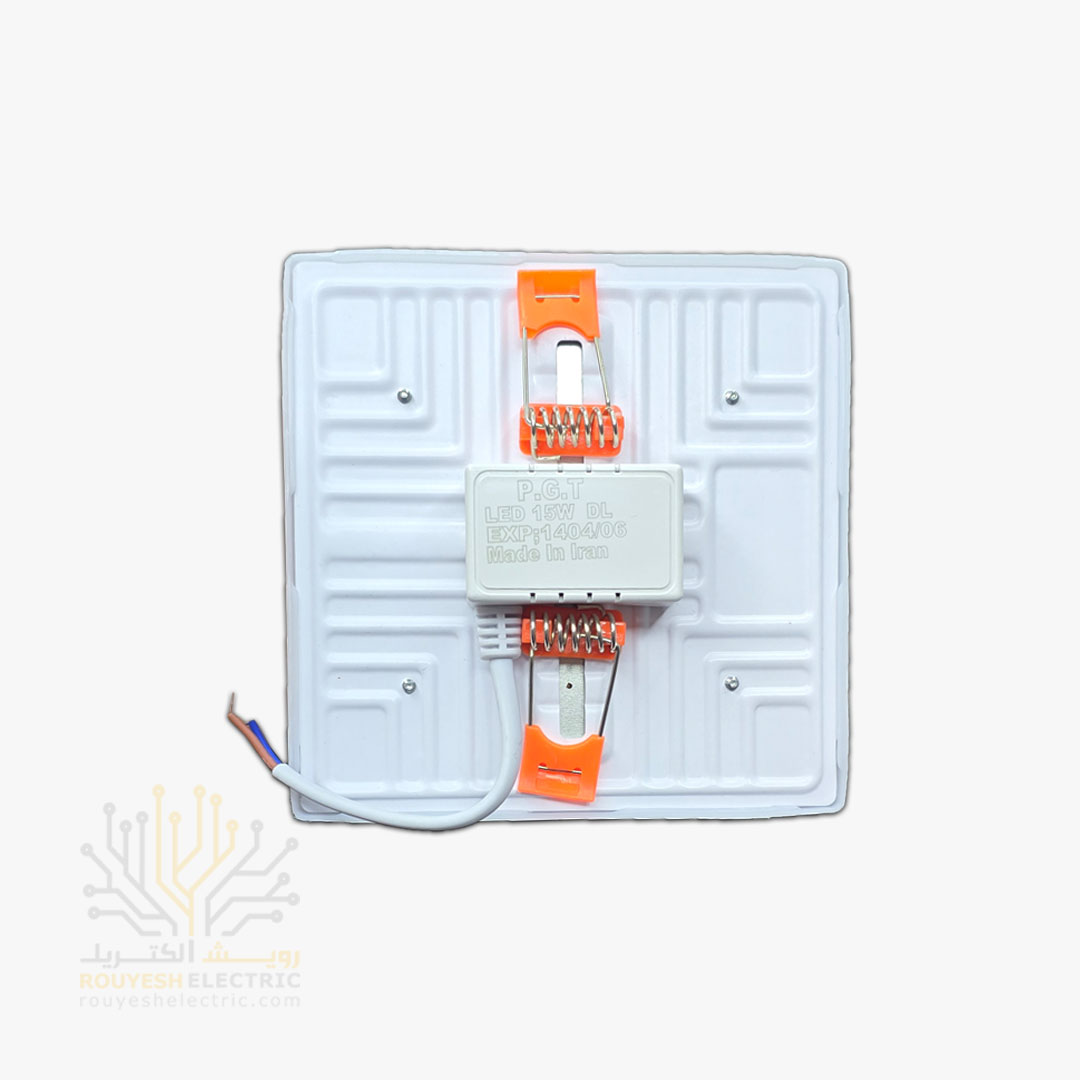 پنل سقفی توکار 15 وات برند پی جی تی PGT مدل فول لایت فنر متغیر مربع استاندارد مهتابی
