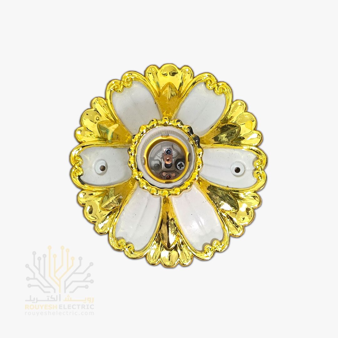 این وسیله یک اتصال‌دهنده مهم است که کار اصلی‌اش فراهم کردن نقطه اتصال امن برای نصب لامپ به شبکه برق سقف شماست. ظاهر مدل افروز تلفیقی دلپذیر از رنگ سفید مات و جزئیات طلایی درخشان دارد که باعث می‌شود از حالت یکنواختی خارج شود. این سرپیچ با طراحی ظریفش، یک عنصر تزئینی کوچک به حساب می‌آید که به شکلی استادانه در سقف شما جا می‌گیرد و جلوه‌ای شیک ایجاد می‌کند.