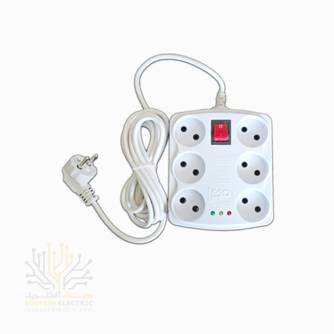 این محافظ برق کامپیوتر یه وسیله جمعوجوره که توی هر فضایی بهراحتی جا میشه. شش تا ورودی داره که بهت اجازه میده چندتا دستگاه رو همزمان وصل کنی و با کلید قطع و وصلی که روی خودش داره، کنترلش خیلی راحتتر میشه. کابل سهمتری سفیدش هم آزادی عمل بیشتری برای چیدمان میز کامپیوترت میده. حتی میتونی اون رو به دیوار هم وصل کنی تا فضای روی میزت خلوتتر بمونه. بستهبندیاش هم بهصورت یه جعبه کارتنی تمیزه و هر کارتن ۳۰ تا ازش داره، ولی میتونی حتی یک بسته هم بخری.