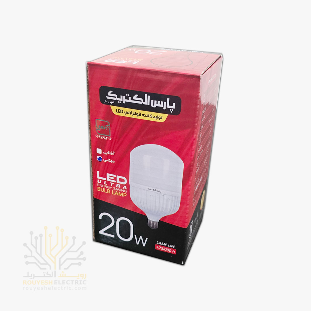 لامپ ال ای دی 20 وات استوانه برند پارس الکتریک مهتابی