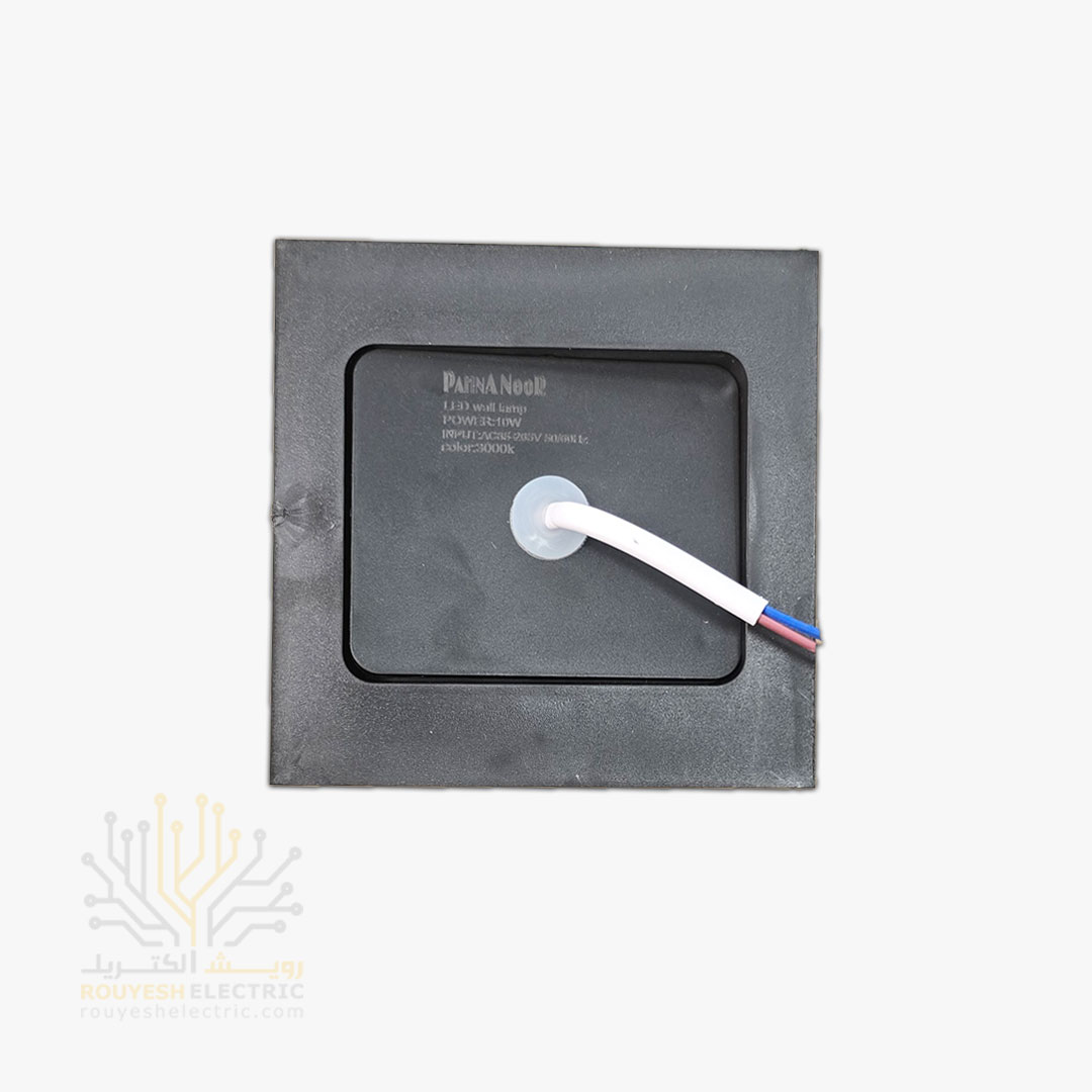 چراغ دیواری دکوراتیو 10 وات برند پهنانور مدل مکعب دو طرفه بدنه مشکی نور آفتابی