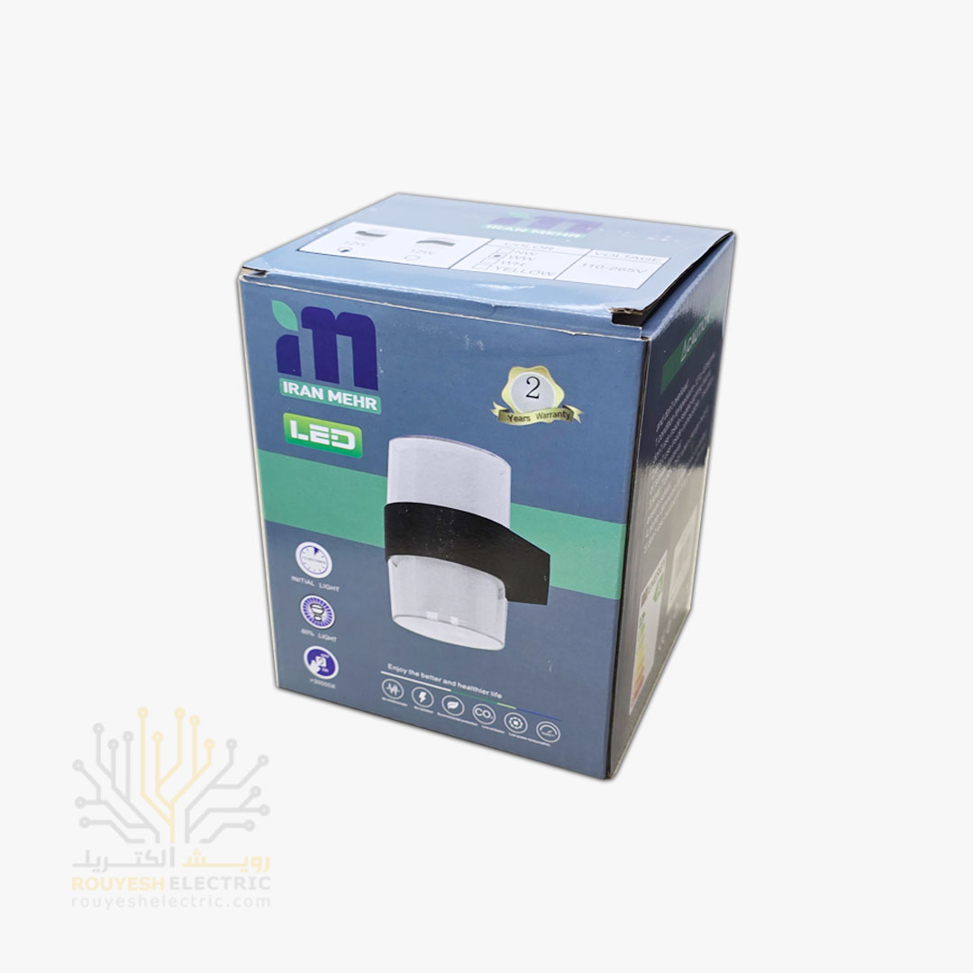 چراغ دیواری دکوراتیو 12 وات برند ایران مهر مدل استوانه دو طرفه کد ایران 19 بدنه مشکی نور آفتابی