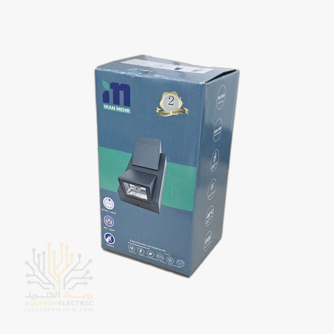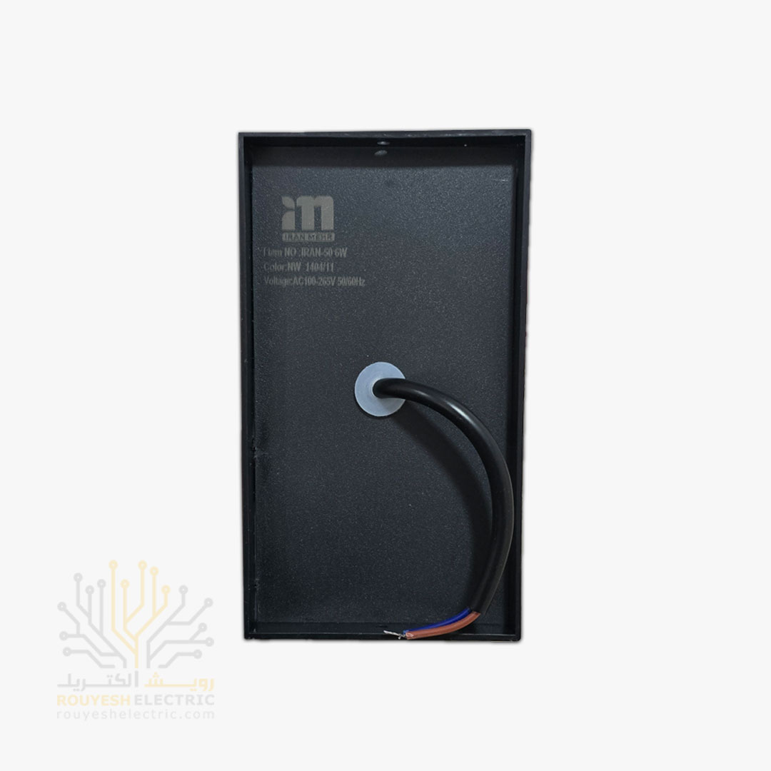 چراغ دیواری دکوراتیو 6 وات برند ایران مهر مدل کلبه ای دو طرفه کد ایران 50 بدنه مشکی نور آفتابی 6 ماه گارانتی