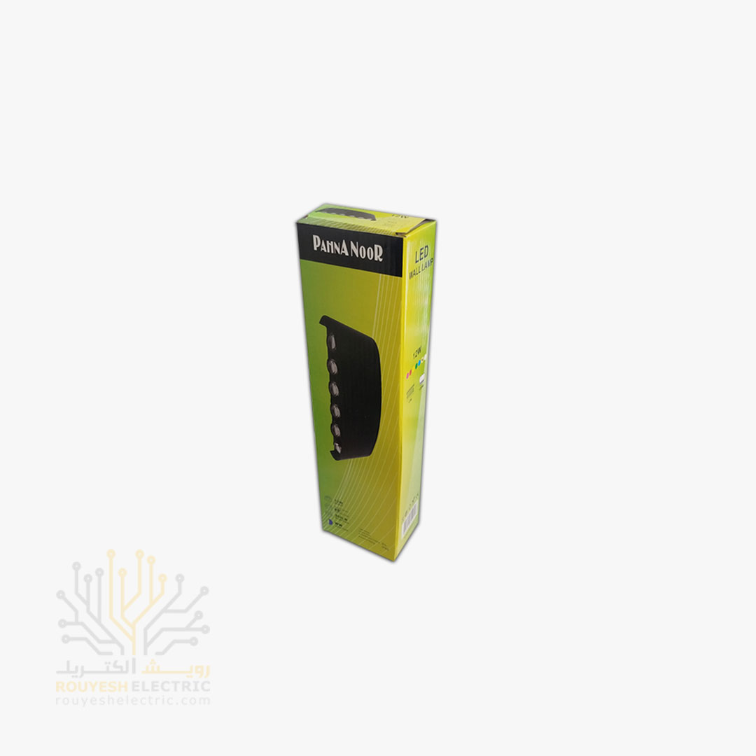 چراغ دیواری دکوراتیو برند پهنانور مدل قطاری 12 وات بدنه آلومینیوم مشکی نور آفتابی
