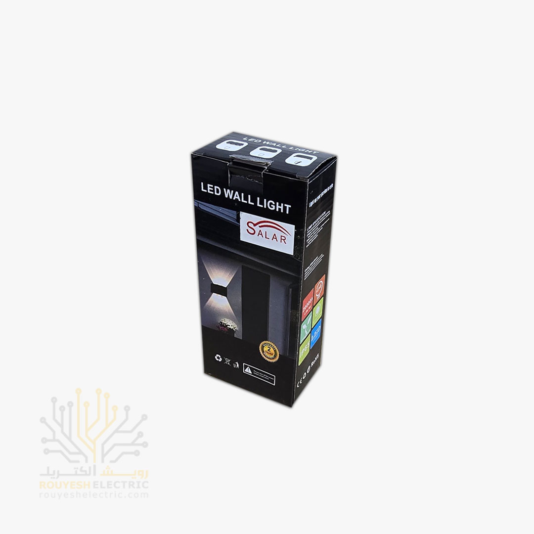 چراغ دیواری دکوراتیو برند سالار مدل قطاری 6 وات بدنه ABS مشکی نور آفتابی
