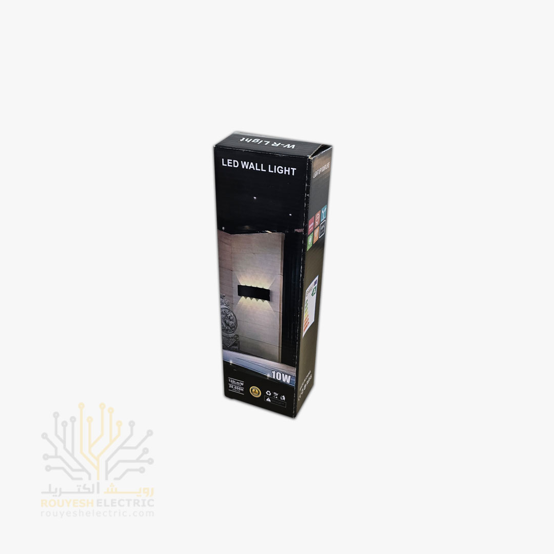 چراغ دیواری دکوراتیو برند دبلیو آر لایت مدل قطاری 10 وات چیپ کری بدنه آلومینیوم مشکی نور آفتابی