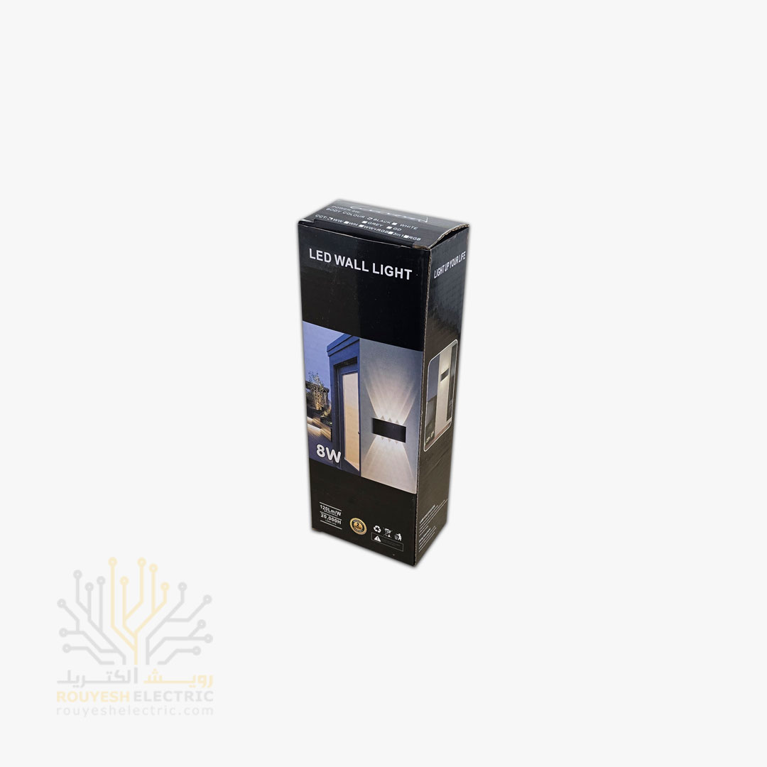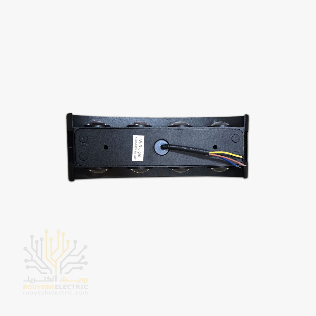 چراغ دیواری دکوراتیو برند دبلیو آر لایت مدل قطاری 8 وات چیپ کری بدنه آلومینیوم مشکی نور آفتابی
