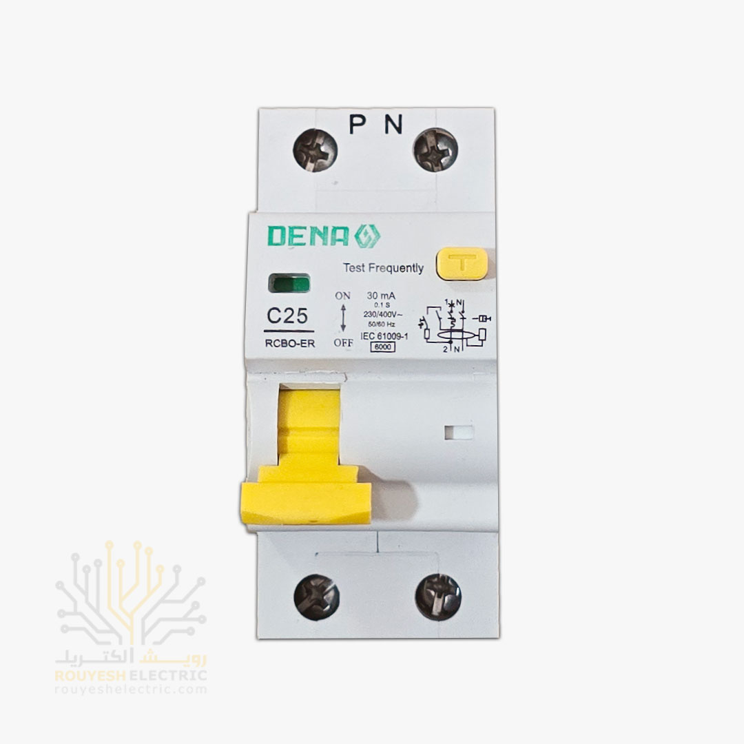 کلید محافظ جان مولتی فانکشن برند دنا تکفاز مدل RCBO الکترونیک 25 آمپر