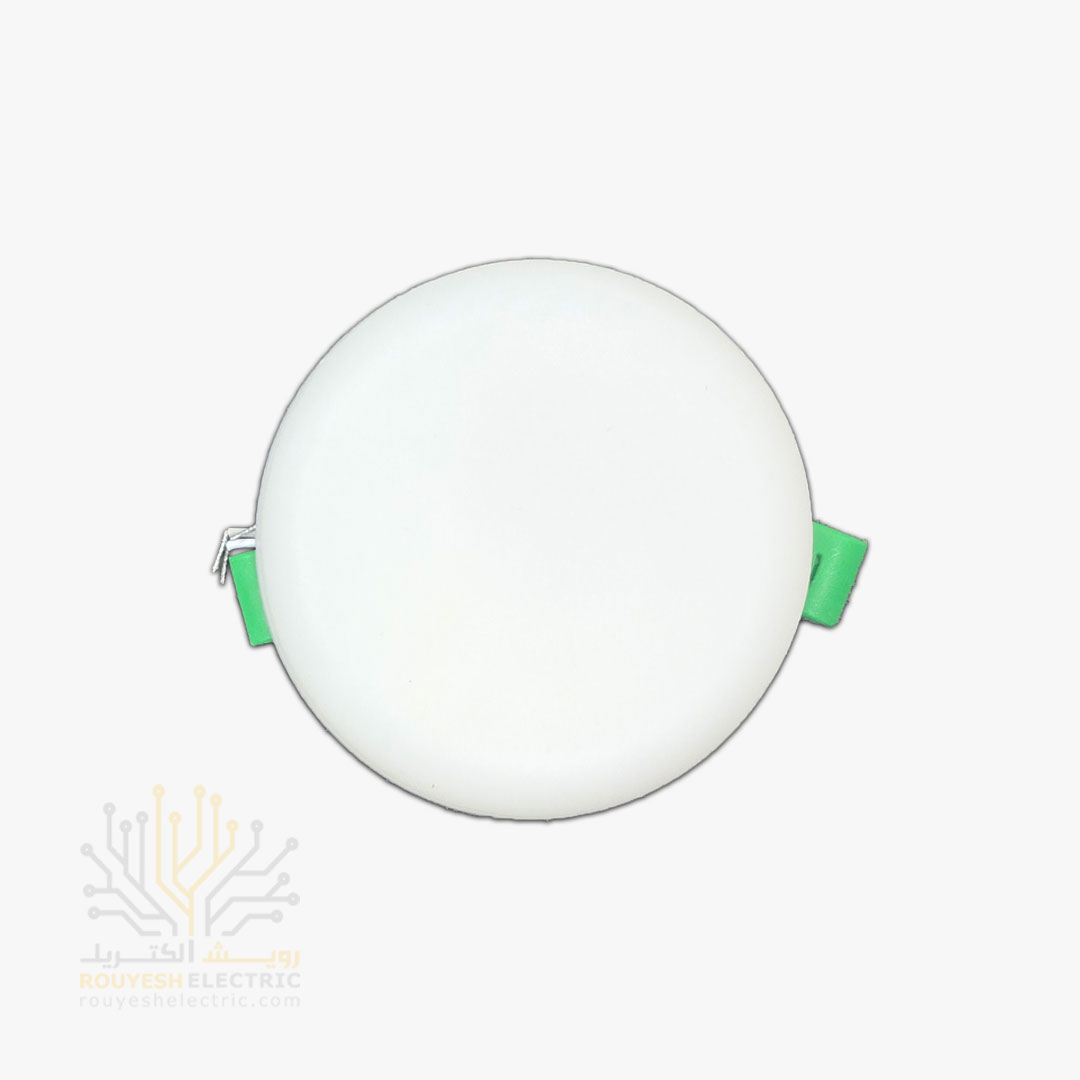 پنل سقفی توکار فول لایت 10 وات برند تک تاب مدل هاله فنر متغیر دایره استاندارد رنگ مهتابی
