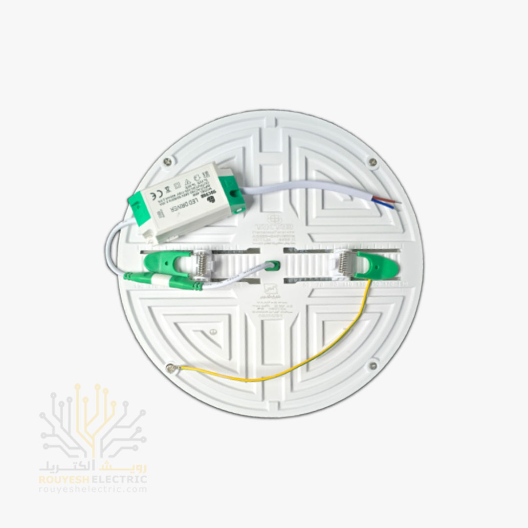 پنل سقفی توکار فول لایت 10 وات برند تک تاب مدل هاله فنر متغیر دایره استاندارد رنگ مهتابی