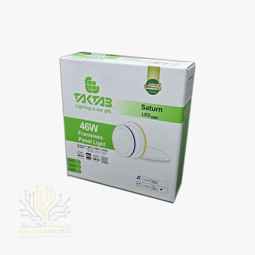 پنل سقفی توکار ۴۶ وات تک تاب مدل زحل یک چراغ LED توکار با طراحی دایره‌ای و نور مهتابی (سرد) است که به‌صورت توکار در سقف‌های کاذب نصب می‌شود. این محصول با توان نوری بالا و طراحی مدرن، برای فضاهایی که نیاز به نور زیاد و یکنواخت دارند بسیار مناسب است.