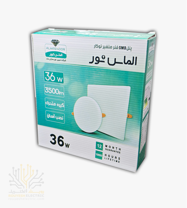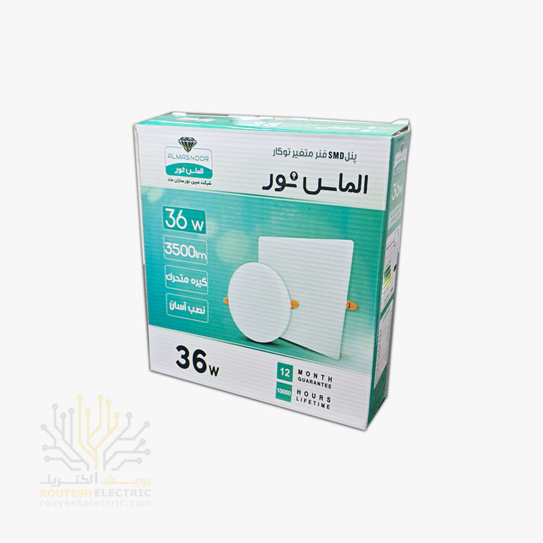 پنل سقفی توکار 36 وات برند الماس نور مدل فول لایت فنر متغیر مربع استاندارد رنگ مهتابی موجود در شرکت ما تولید کشور ایران میباشد. از مزایای این محصول میتوان به قیمت مناسب نسبت به سایر محصولات مشابه ، دارا بودن نشان استاندارد ، وجود فنرهای قابل تنظیم که حفره های مختلفی را پوشش می دهند و همچنین ضمانت تعویض محصول اشاره کرد که خیال مشتریان را از بابت سلامت جنسی که تهیه میکنند، آسوده میسازد و همچنین جنس كاورپنل ازنوع PC مى باشد و به صورتى طراحى شده كه قابلیت بازتاب نور180 درجه اى (تمام نور) را دارد