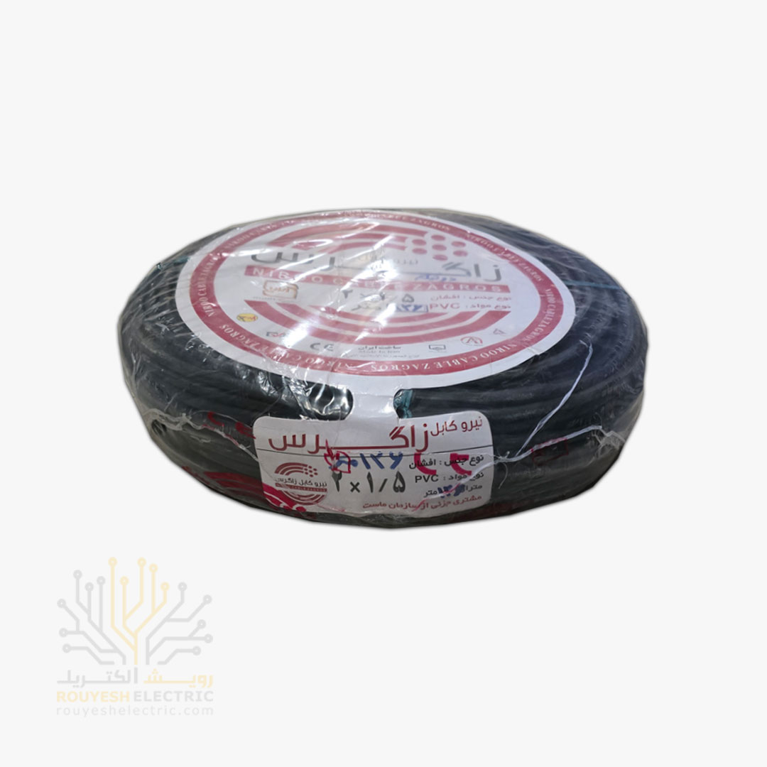 کابل برق نمره 2x1/5 برند نیرو کابل زاگرس استاندارد حلقه 126 متری