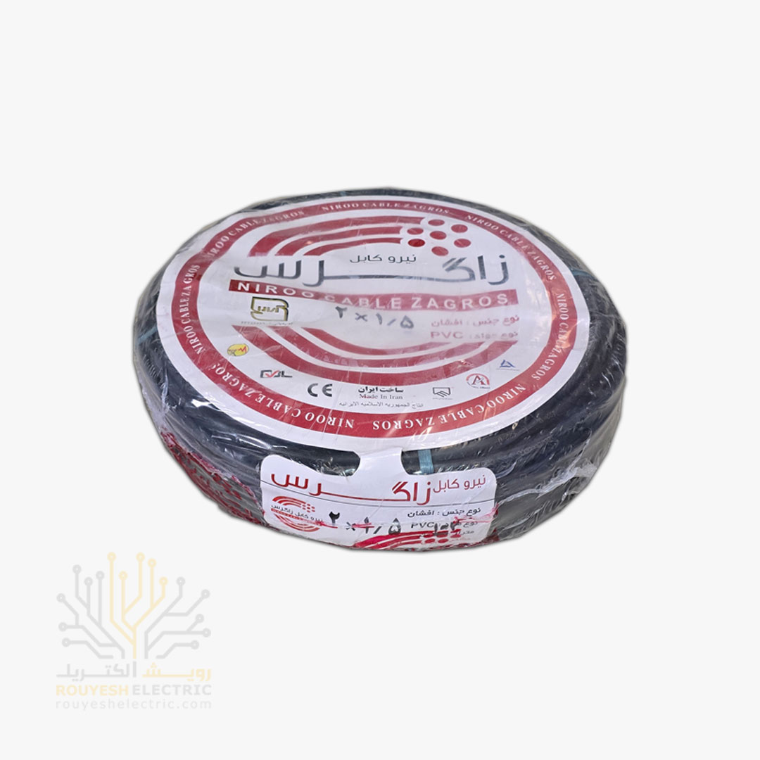 کابل برق نمره 2x1/5 برند نیرو کابل زاگرس استاندارد حلقه 62 متری