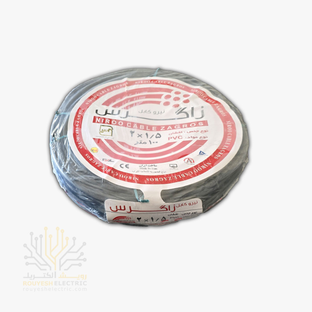 کابل برق نمره 2x1/5 برند نیرو کابل زاگرس استاندارد حلقه 100 متری