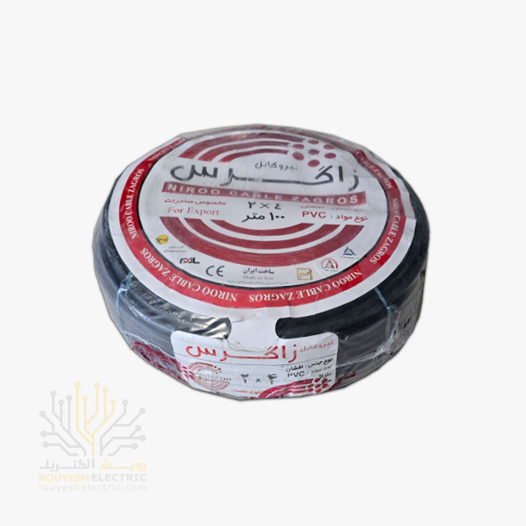 کابل برق نمره 2x4 برند نیرو کابل زاگرس استاندارد حلقه 102 متری