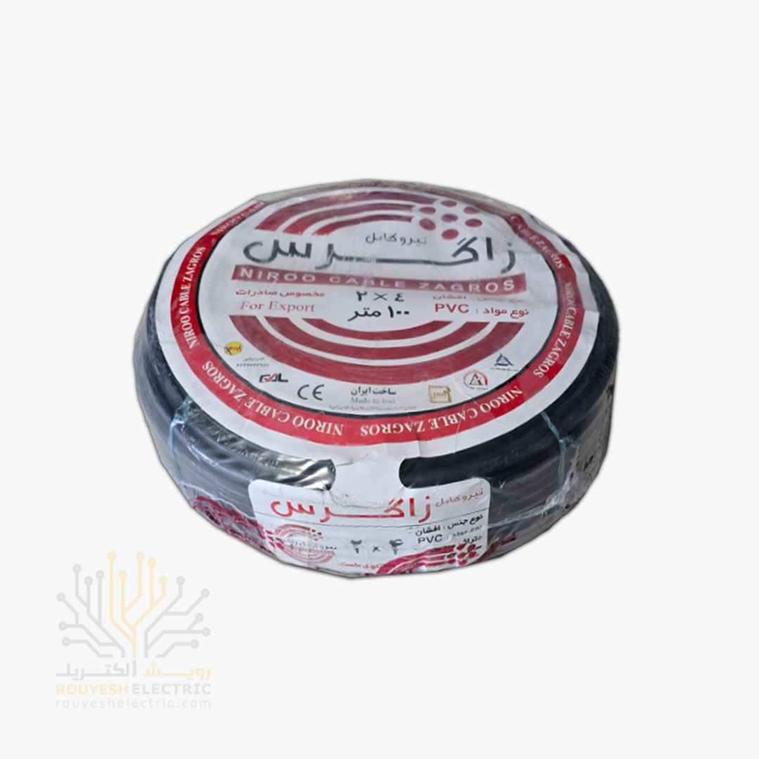 کابل برق نمره 2x4 برند نیرو کابل زاگرس استاندارد حلقه 108 متری