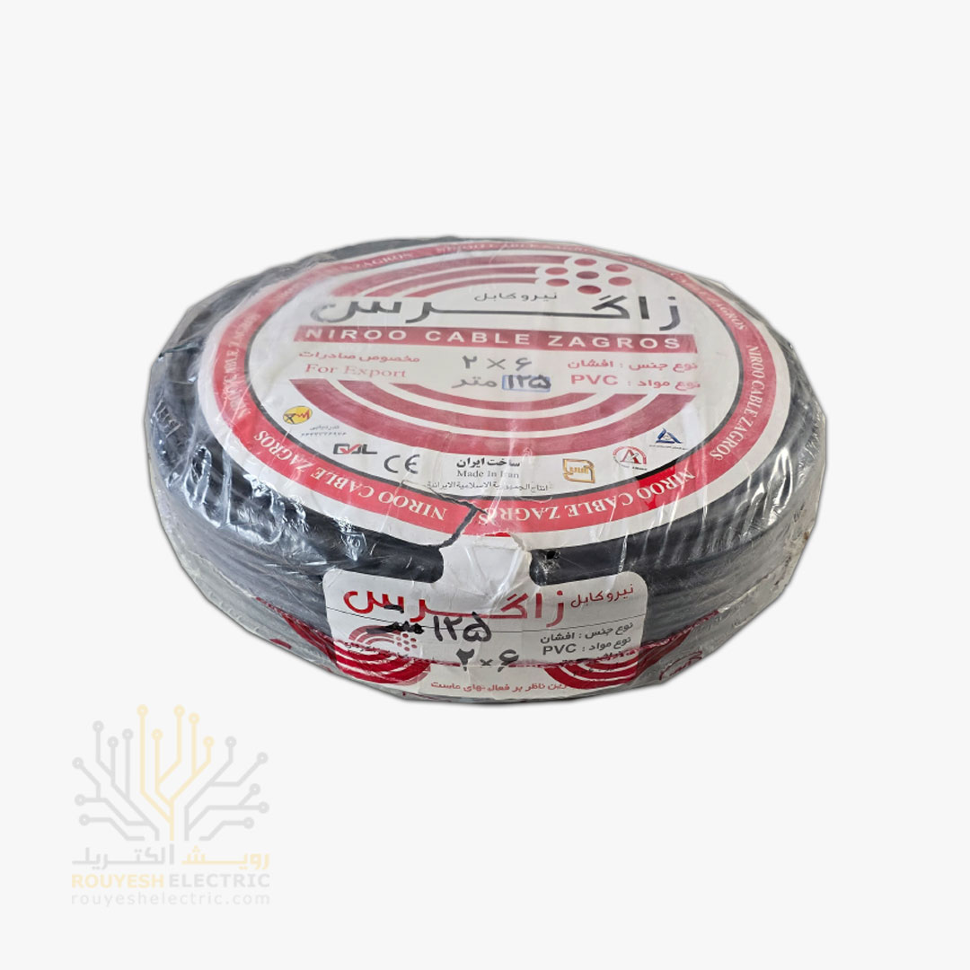 کابل برق نمره 2x6 برند نیرو کابل زاگرس استاندارد حلقه 125 متری