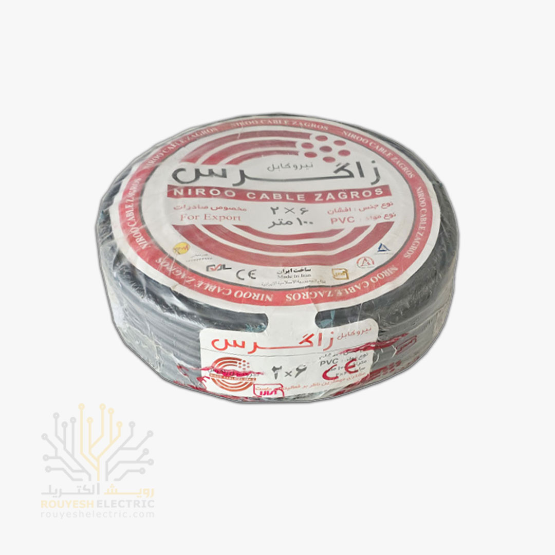 کابل برق نمره 2x6 برند نیرو کابل زاگرس استاندارد حلقه 93 متری