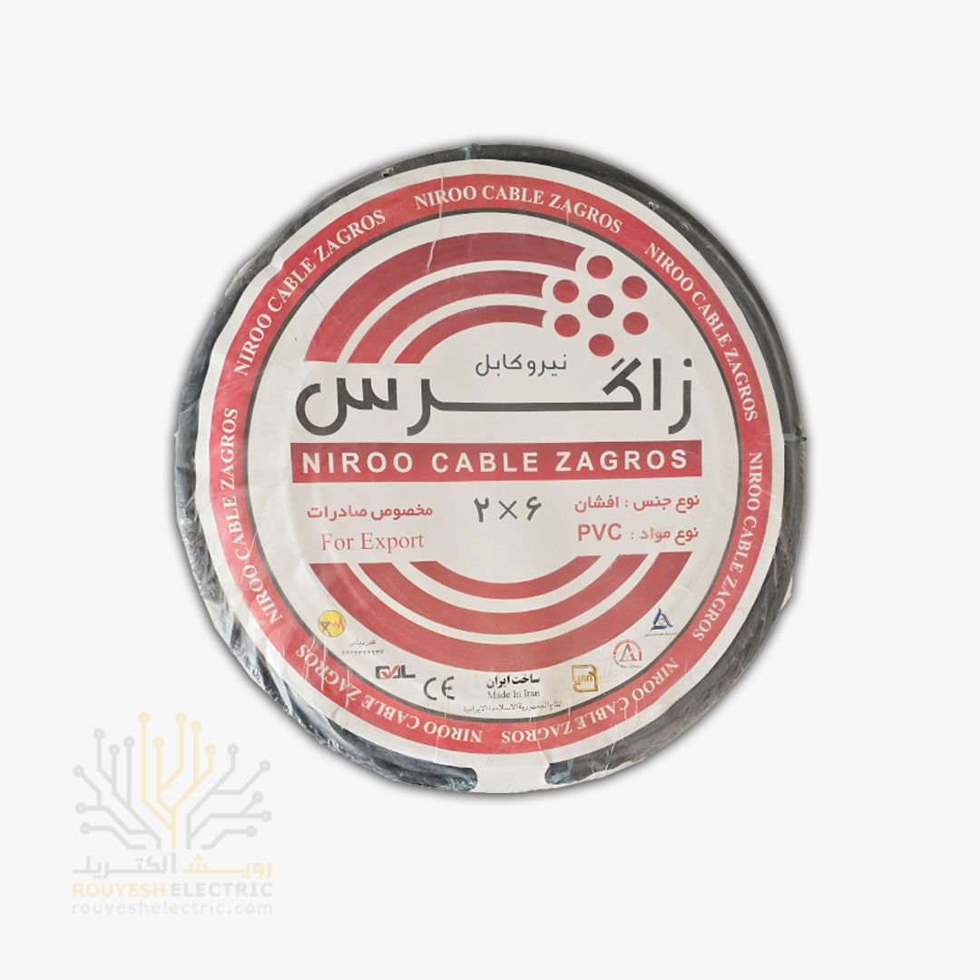 کابل برق نمره 2x6 برند نیرو کابل زاگرس استاندارد حلقه 94 متری