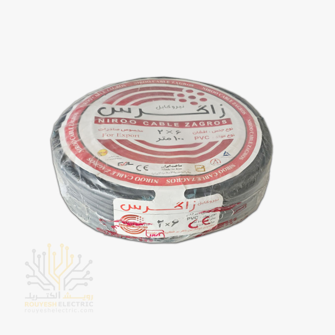 کابل برق نمره 2x6 برند نیرو کابل زاگرس استاندارد حلقه 100 متری
