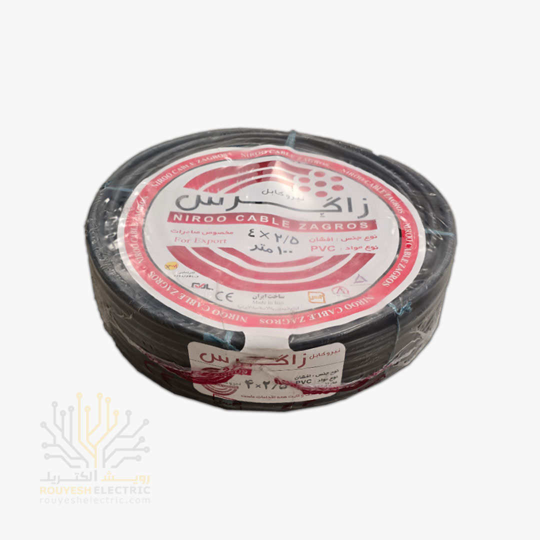 کابل برق نمره 4x2/5 برند نیرو کابل زاگرس استاندارد حلقه 100 متری