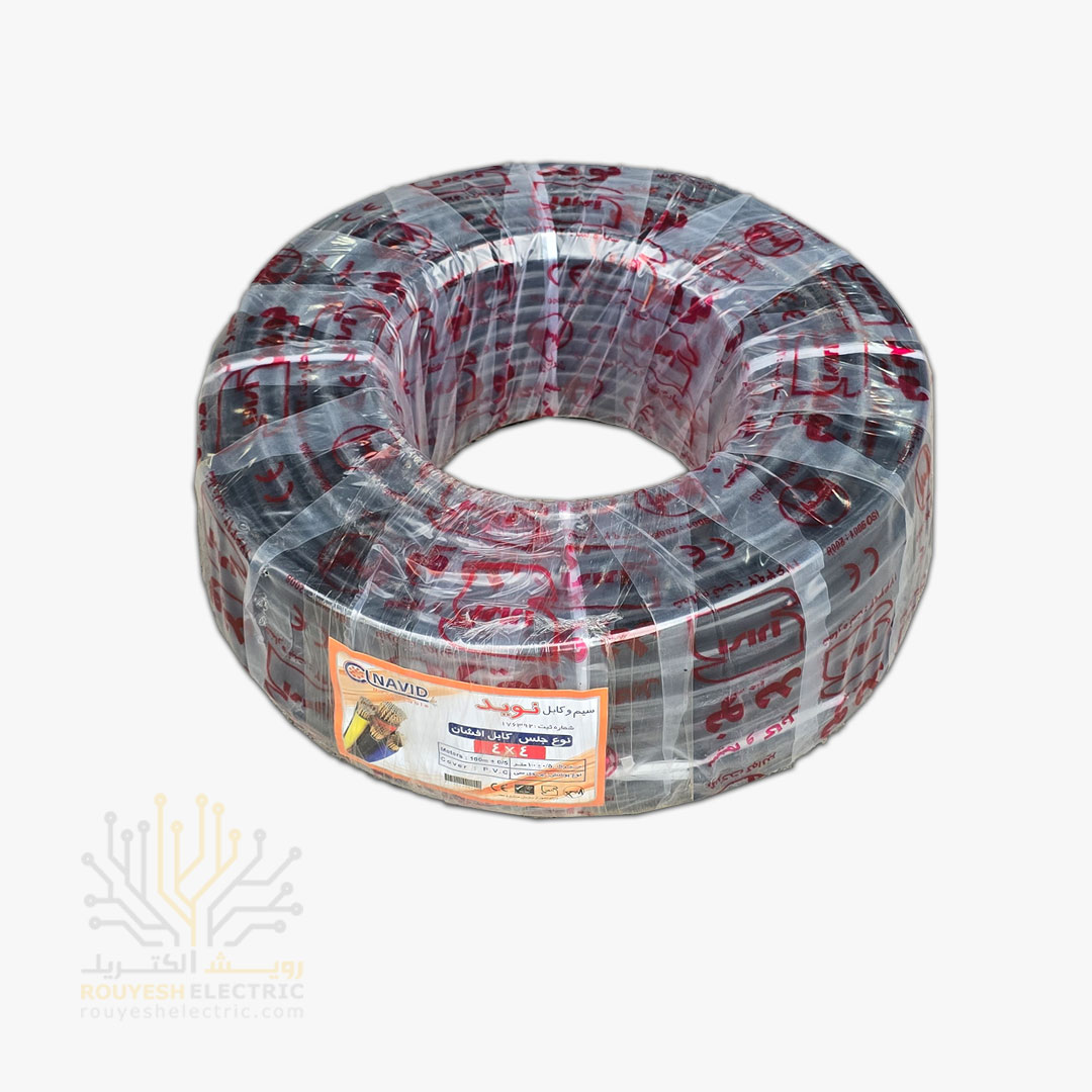کابل برق نمره 4x6 برند نوید استاندارد حلقه 100 متری