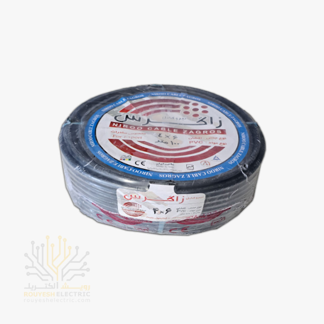 کابل برق نمره 4x6 برند نیرو کابل زاگرس استاندارد حلقه 100 متری