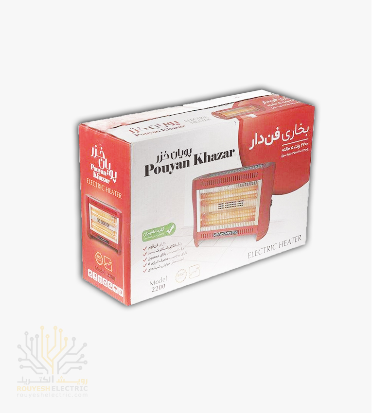 بخاری برقی فن دار برند پویان خزر مدل 2200 پنج شعله استاندارد