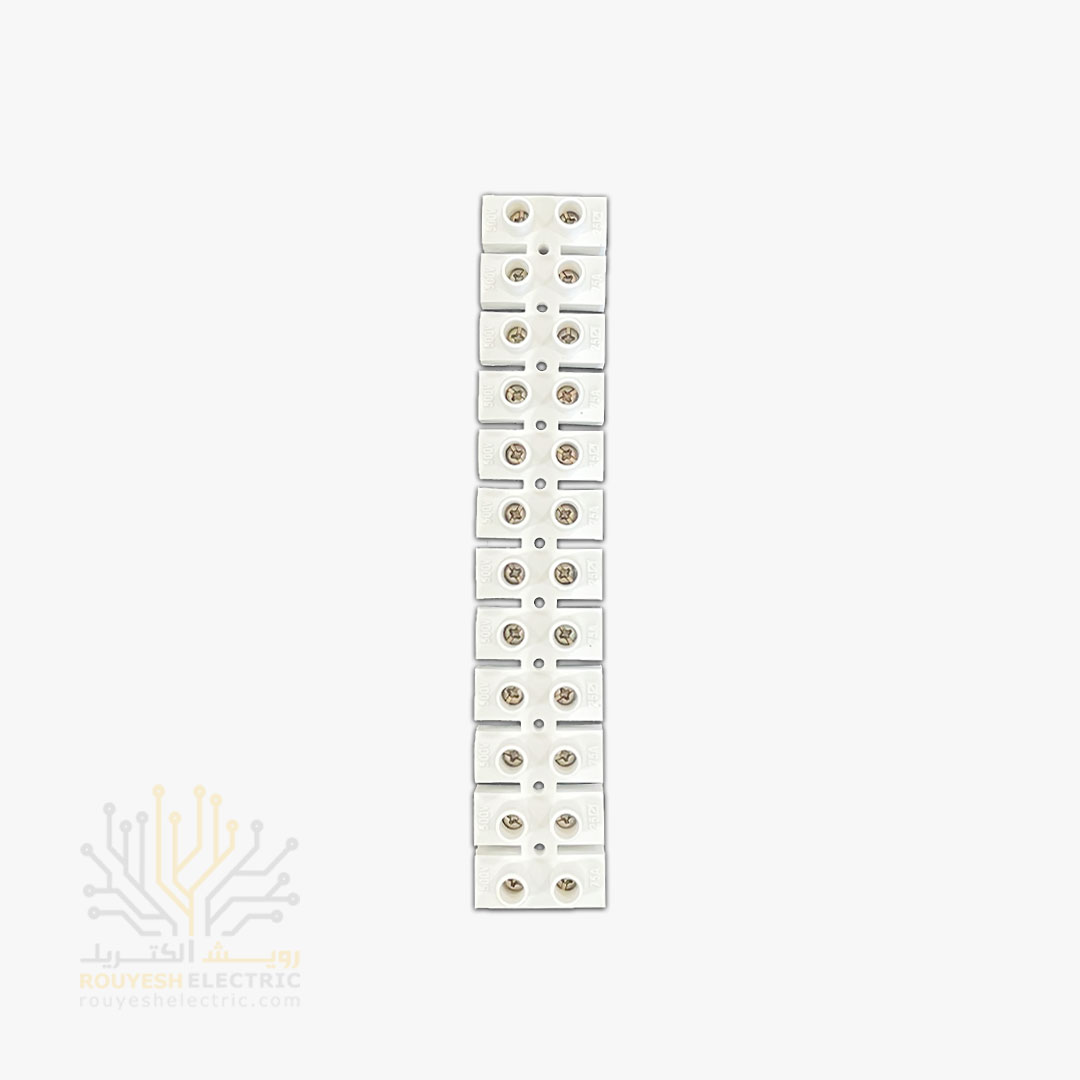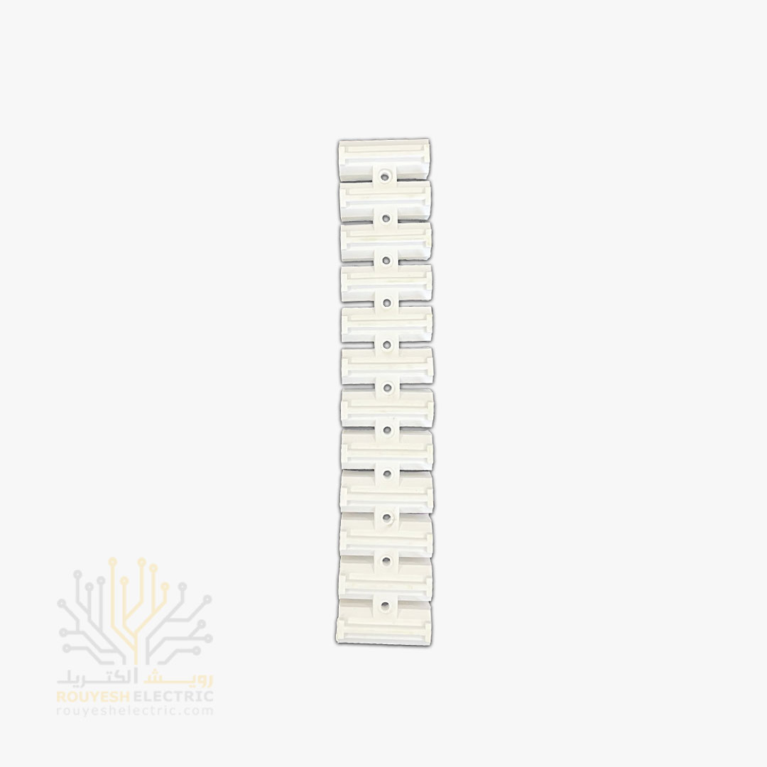 اگه دنبال یه ترمینال جمع‌وجور و خوش‌ساخت برای کارهای برق‌کشی هستی، این مدل با بدنه PVC سفید و طراحی مستطیلی‌ش یه انتخاب عالیه. ابعادش حدود ۲۰ در ۳.۵ در ۳ سانتی‌متره و توی یه جعبه مقوایی بسته‌بندی می‌شه که یه شاخه داخلشه. هر کارتن شامل ۳۰ بسته‌ست و حتی با خرید یه شاخه هم می‌تونی کارتو راه بندازی. ۱۲ تا سیم‌گیر داره که برای اتصال سیم‌ها کاملاً جواب می‌ده و ظاهر ساده و تمیزش باعث می‌شه توی هر محیطی به‌راحتی جا بگیره.