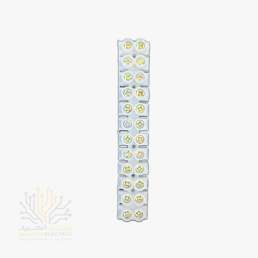 این ترمینال یه قطعه کوچیک مستطیلیه، حدود ده سانت طول داره و از جنس پلی‌اتیلن شفاف ساخته شده. توی جعبه‌های مقوایی بسته‌بندی میشه و هر بسته ۱۰ تا شاخه داره. هر شاخه هم ۱۲ تا سیم‌گیر داره، پس برای سیم‌کشی حسابی کاربردیه.