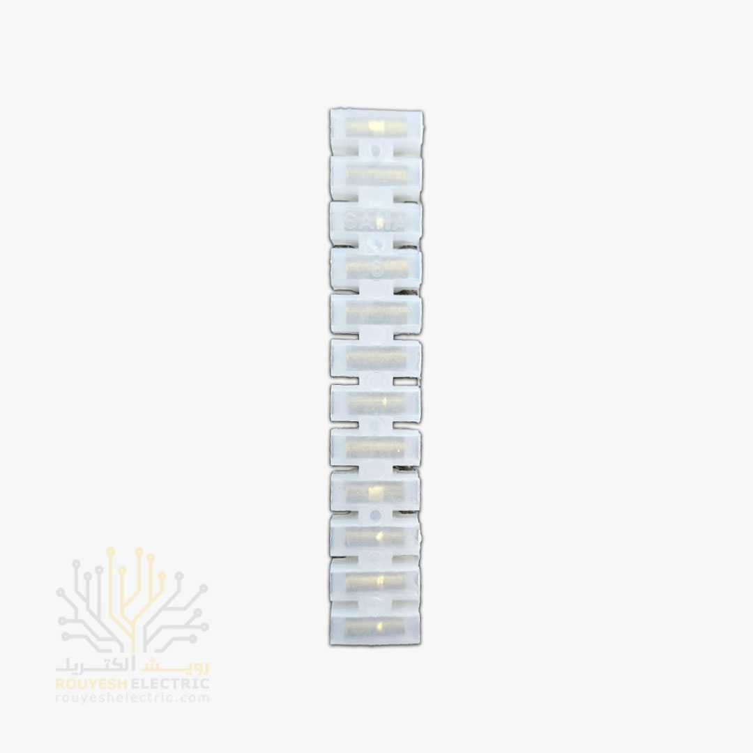 ترمینال نمره 6 پلاستیکی برند سحا، یک قطعه اتصال الکتریکی است که برای اتصال ایمن سیم‌های برق با قطر متوسط طراحی شده است. عدد “6” نشان‌دهنده حداکثر سطح مقطع سیم است که این ترمینال می‌تواند به طور ایمن پشتیبانی کند. جنس پلاستیکی آن، این ترمینال را سبک و مقرون به صرفه می‌سازد و برای استفاده در محیط‌هایی که نیاز به مقاومت حرارتی بسیار بالا یا استحکام مکانیکی فوق‌العاده نیست، مناسب است.