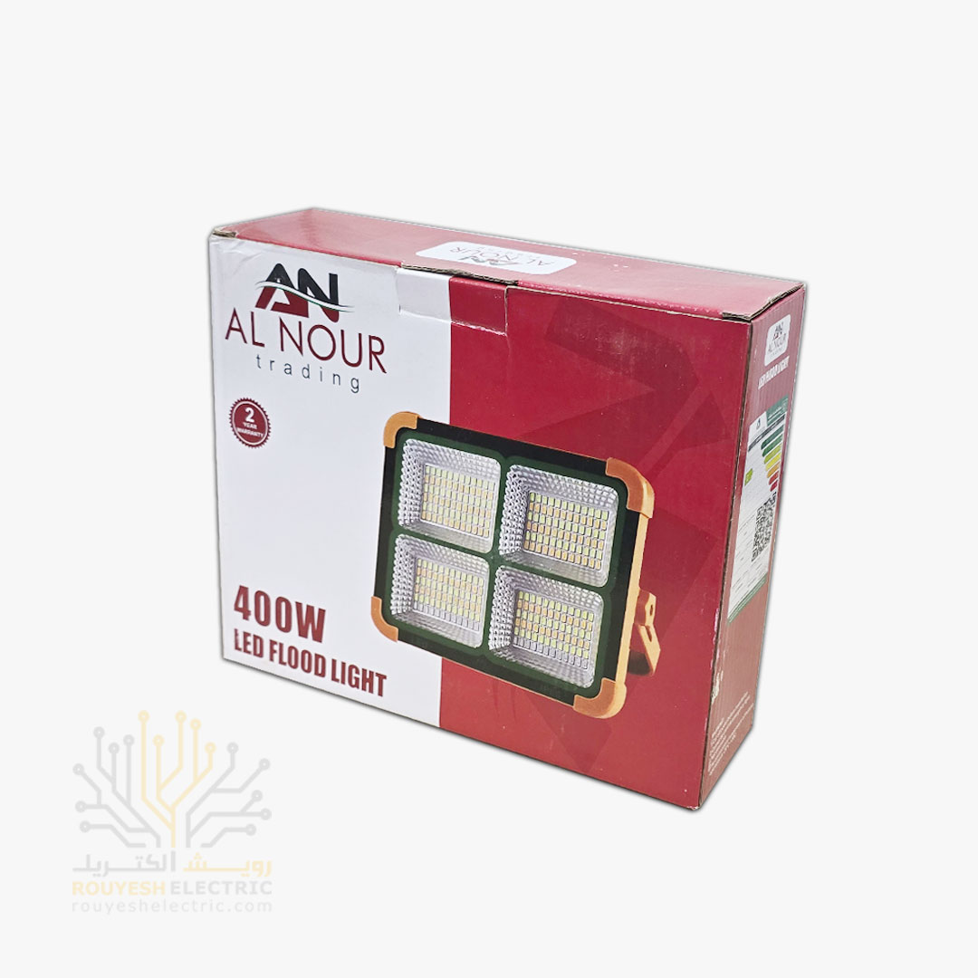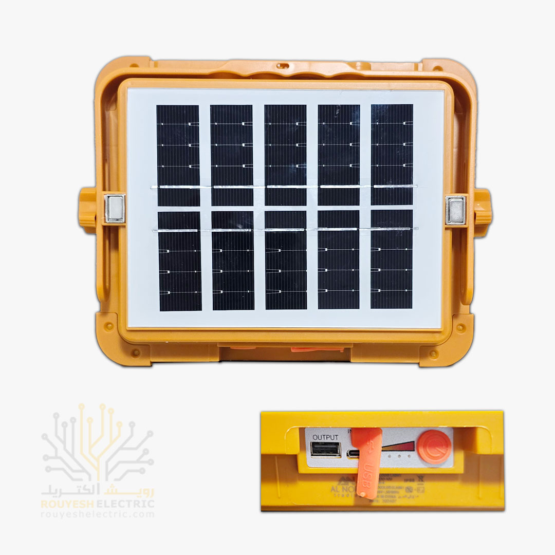 چراغ اضطراری پروژکتوری 288 SMD برند آلنور 400 وات 4 حالته دارای پنل خورشیدی
