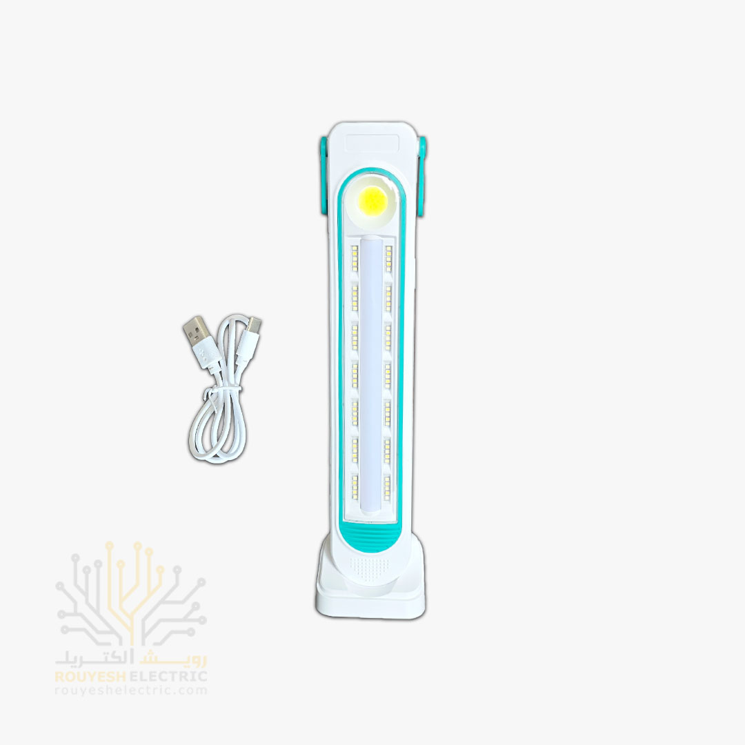 این چراغ مجهز به باتری داخلی قابل شارژ است که از طریق پنل خورشیدی یا پورت Type-C شارژ میشود. پس از شارژ کامل، میتواند تا چند ساعت نوردهی مداوم داشته باشد. با بهرهگیری از ۷۰ عدد لامپ SMD LED، نور یکنواخت و قدرتمندی تولید میکند. سیستم نوردهی ۷ حالته شامل حالتهای مختلف نور سفید، زرد، ترکیبی، COB پرنور، COB ملایم، نور SOS و چراغ پلیسی چشمکزن است. همچنین قابلیت استفاده بهعنوان پاوربانک برای شارژ موبایل یا دستگاههای USB را دارد.