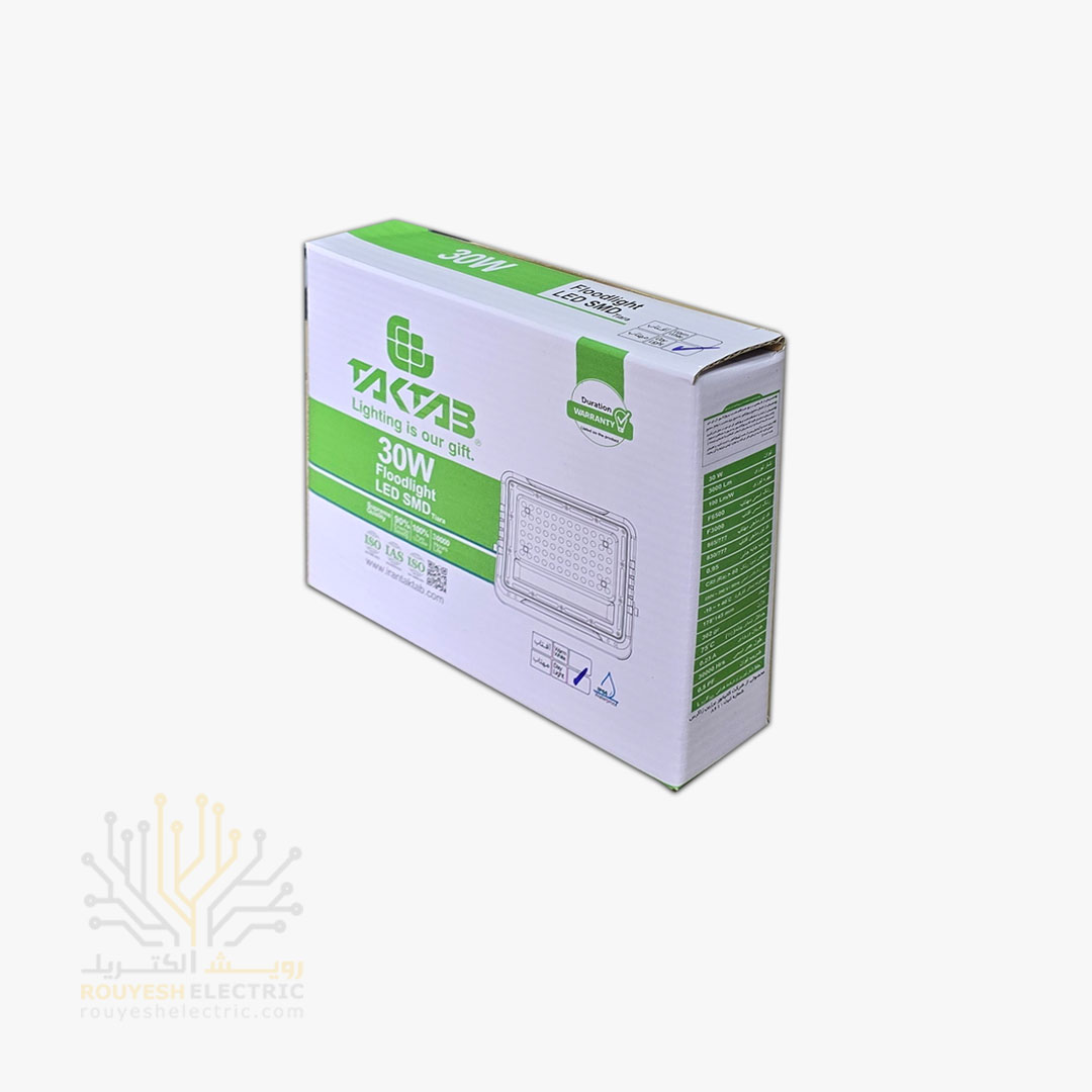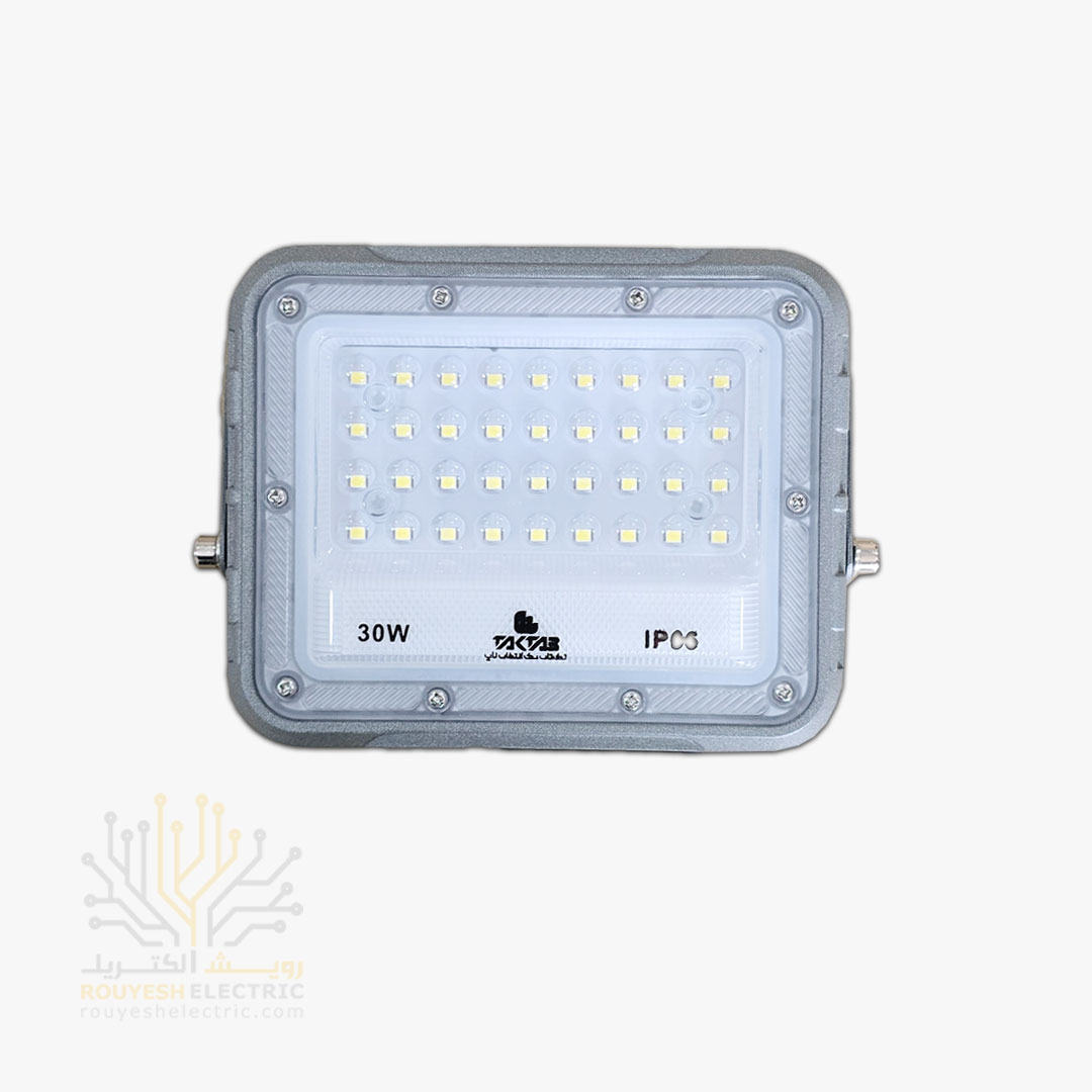 پروژکتور 30 وات SMD برند تک تاب مدل تیارا بدنه طوسی با درایور رنگ مهتابی
