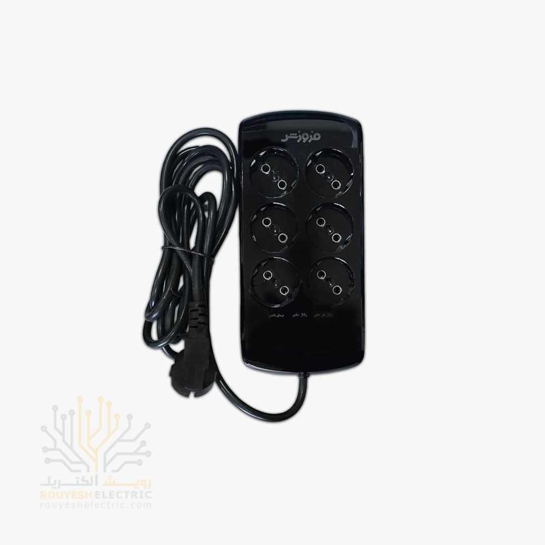 محافظ برق کامپیوتر برند فروزش مدل LT لوتوس 6 خانه دیجیتال بدنه مشکی 2/8 متری