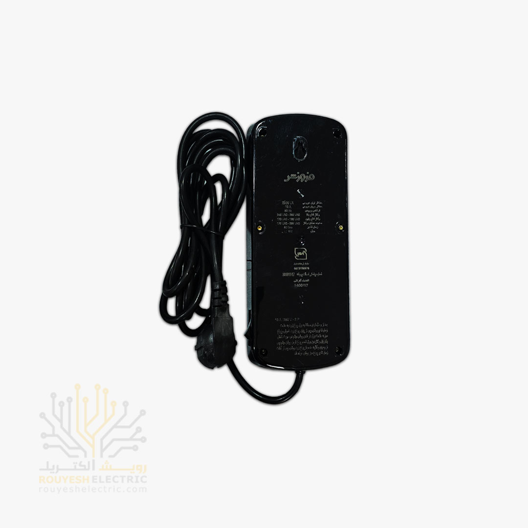 محافظ برق کامپیوتر سیار پنج خانه برند فروزش مدل FR250 بدون ارت کلید دار بدنه سفید آنالوگ 1/8 متری