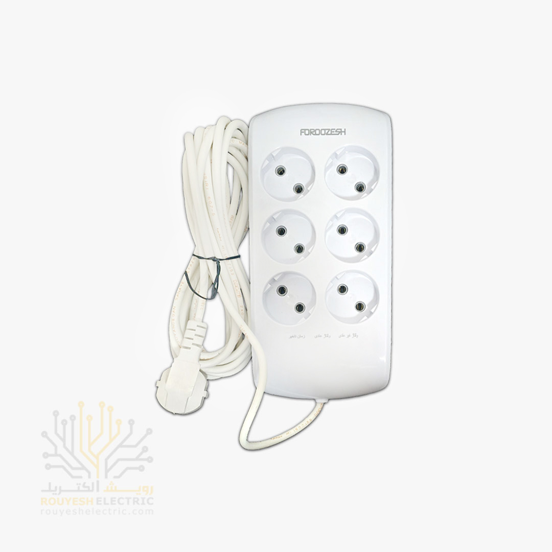 محافظ برق کامپیوتر سیار شش خانه برند فروزش مدل LT600 لوتوس بدون ارت بدون کلید بدنه سفید آنالوگ 2/8 متری