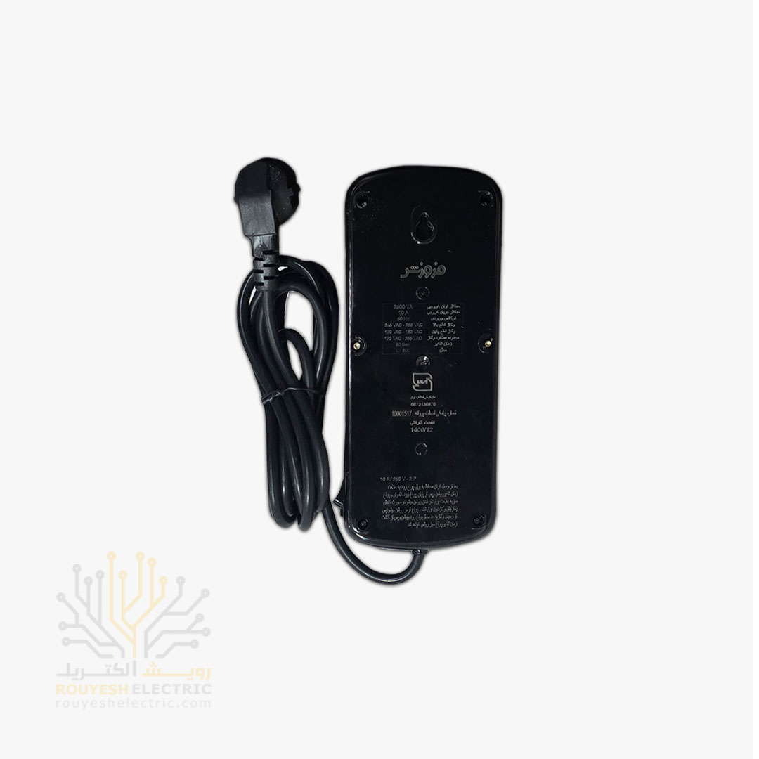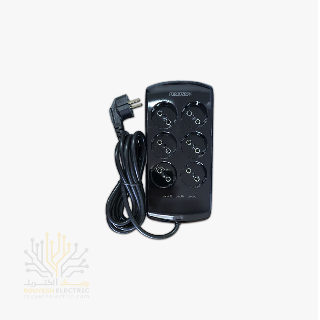 محافظ برق کامپیوتر سیار شش خانه برند فروزش مدل LT600 لوتوس بدون ارت بدون کلید بدنه مشکی آنالوگ 2/8 متری