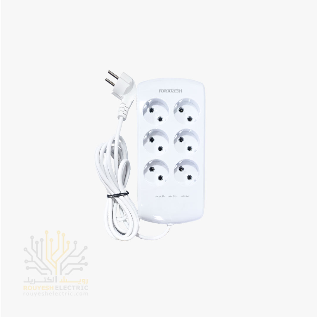 محافظ برق کامپیوتر سیار شش خانه برند فروزش مدل LT600 لوتوس بدون ارت بدون کلید بدنه سفید آنالوگ 2/8 متری