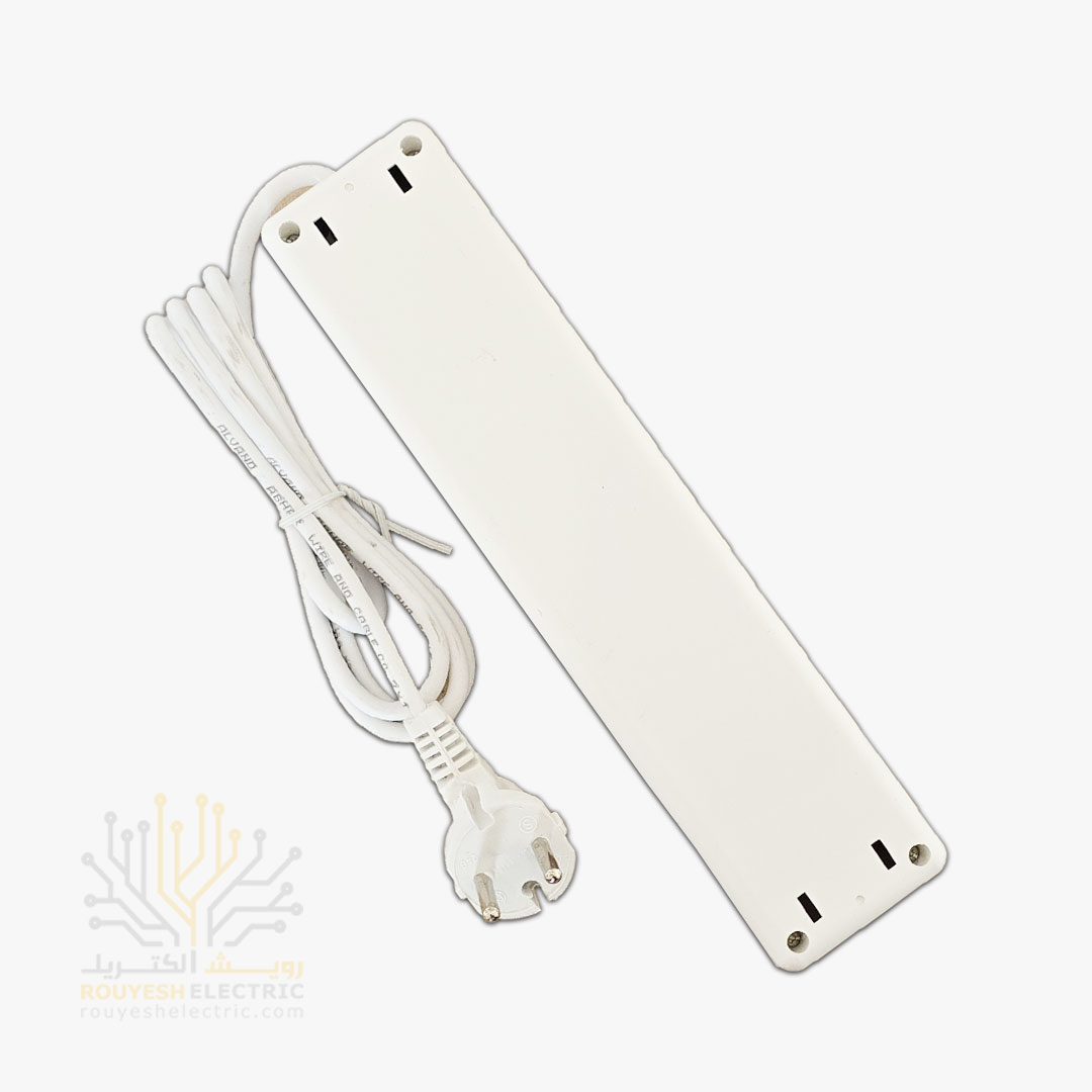 بدنه‌ی سفید و پلاستیکی‌ این چهار راهی برق سیار با طراحی مستطیلی و ابعاد حدود ۲۴ در ۵ سانت، هم ظاهر ساده‌ای داره هم راحت جا می‌گیره روی میز یا کنار پریز. کابلش هم سفید و ۱.۵ متریه، با مغزی مسی و نمره ۲x1 که برای مصارف معمولی خونگی یا اداری کاملاً جواب می‌ده. بسته‌بندیش نایلونی و هر بسته شامل یه عدده، ولی اگه بخوای عمده بخری، توی هر کارتن ۴۰ بسته هست.