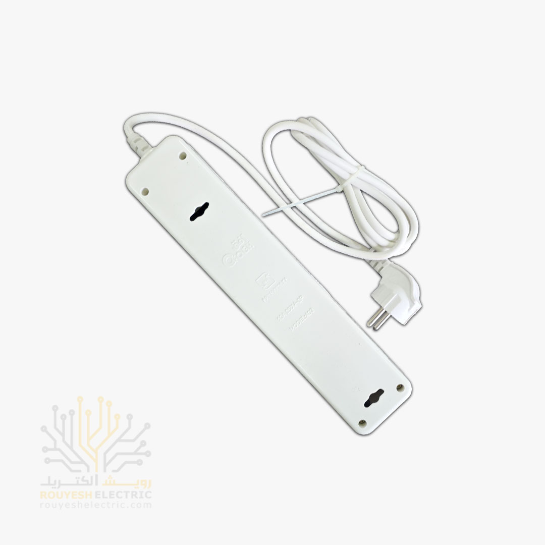 این چندراهی برق، چهار ورودی داره که می‌تونی وسایل مختلف رو بهش وصل کنی و یه کلید داره که روشن و خاموش کردنش رو راحت می‌کنه.
