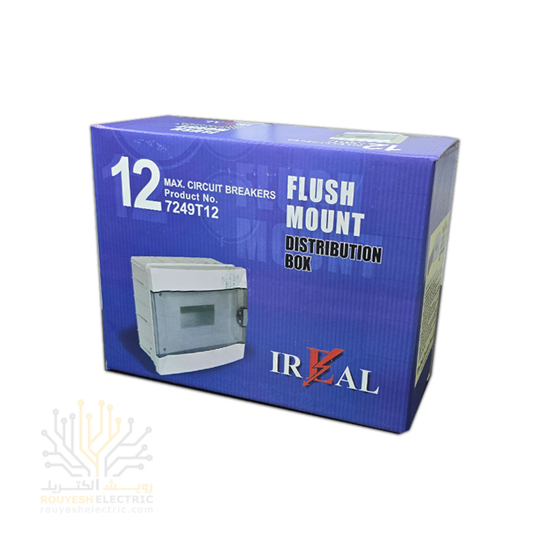 جعبه فیوز 12 تایی توکار ایرآل یک محفظه الکتریکی با طراحی توکار است که برای نصب و نگهداری 12 عدد فیوز مینیاتوری (MCB) مورد استفاده قرار می‌گیرد. این محصول به گونه‌ای طراحی شده که درون دیوار نصب می‌شود (توکار) و ظاهر شکیل‌تری نسبت به مدل‌های روکار دارد. جعبه فیوز وظیفه‌ی توزیع برق در بخش‌های مختلف ساختمان و همچنین محافظت از مدارهای الکتریکی در برابر اضافه‌بار و اتصال کوتاه را برعهده دارد.